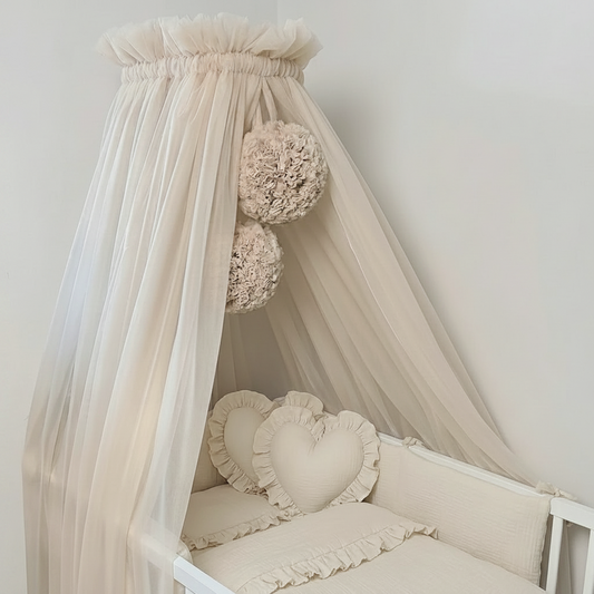 Deluxe Betthimmel Tüll mit Bommel
