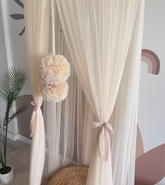 AusverkauftBaldachin hellbeige mit Bommeln