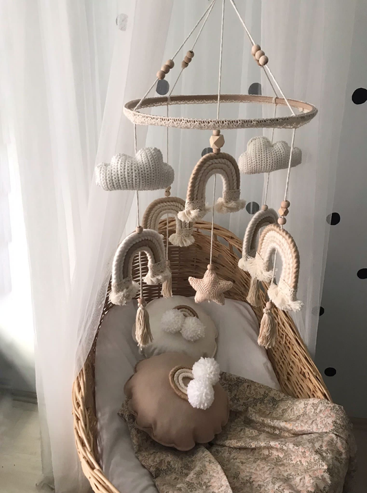 Makramee Babymobilé beige weiß Wolken