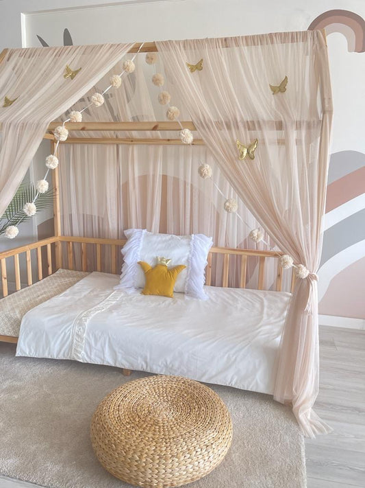 Betthimmel beige mit Bommeln