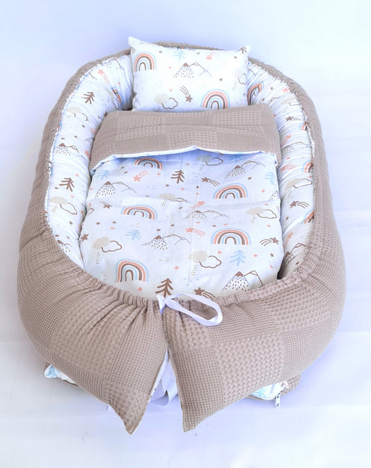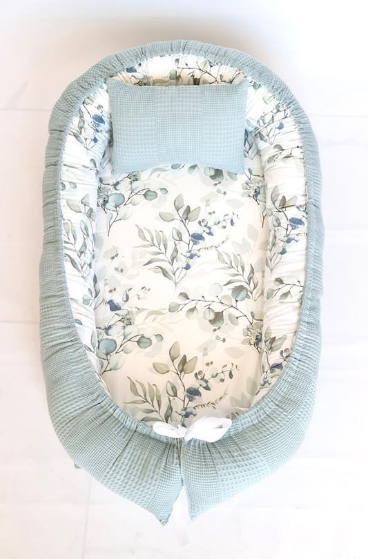 2-piece set baby nest petrol blue eucalyptus + summer blanket