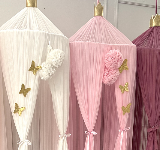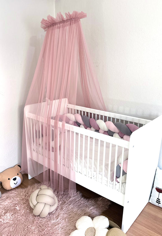Baby Fancyroom canopy for baby bed 300x180 cm – fine tulle, handmade, elegant flounce, antique pink