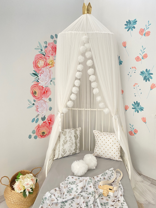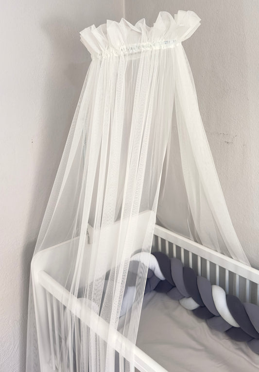 Baby Fancyroom canopy for baby bed 300x180 cm – fine tulle, handmade, elegant flounce, ecru