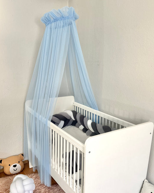 Baby Fancyroom Canopy for Baby Bed 300x180 cm – Fine Tulle, Handmade, Elegant Valance, Blue