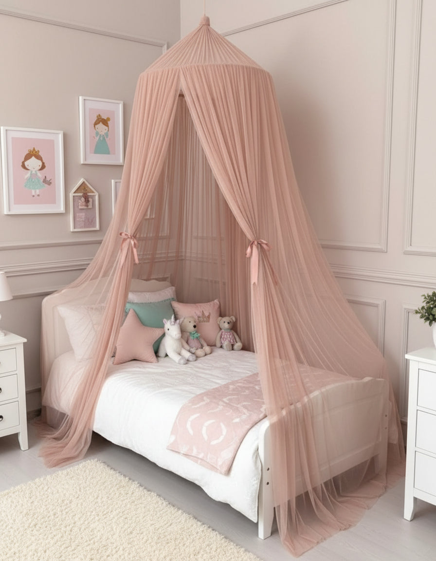 This beautiful canopy sewn from 25 meters of soft tulle will be the eye-catcher in the baby's room.