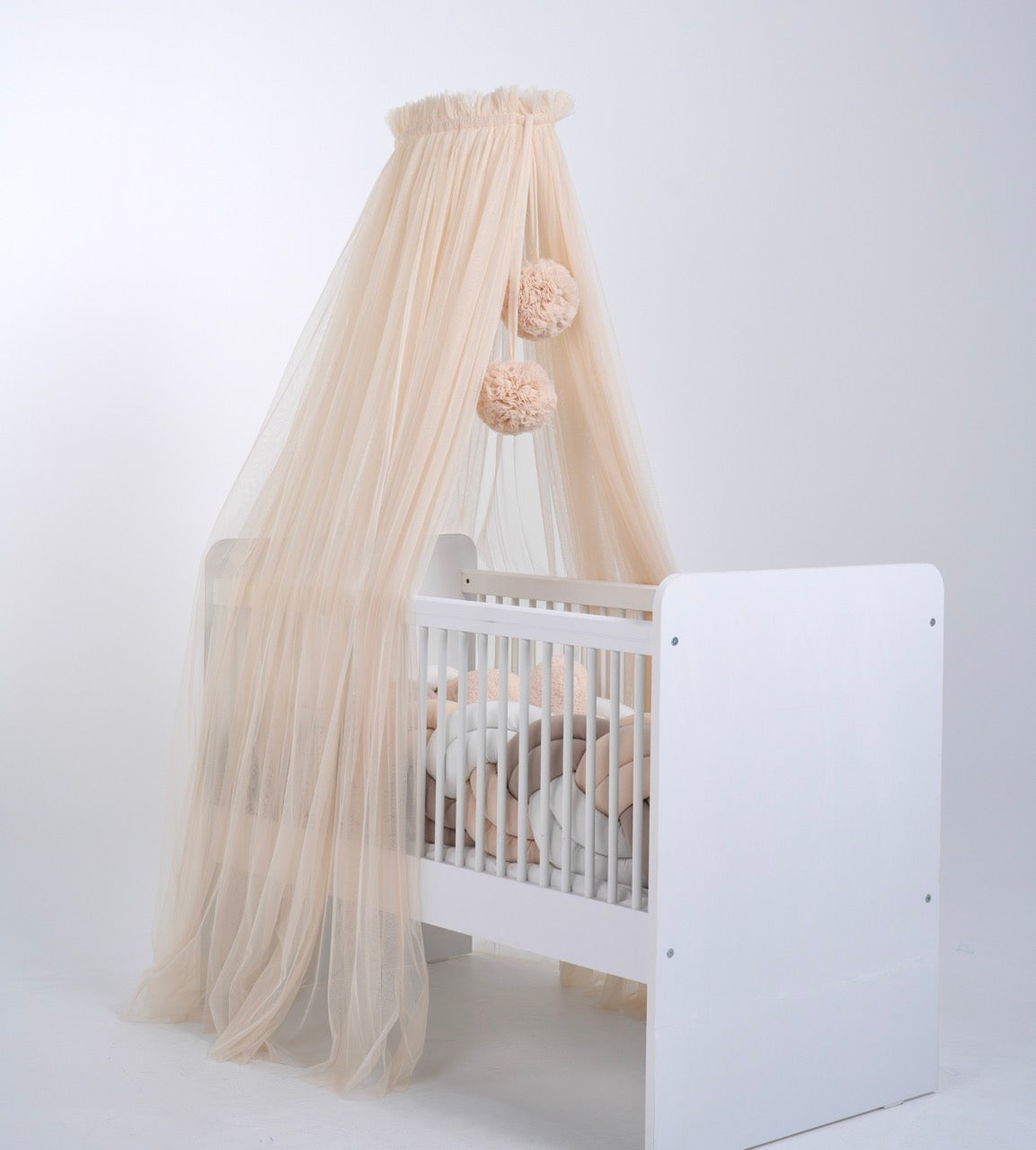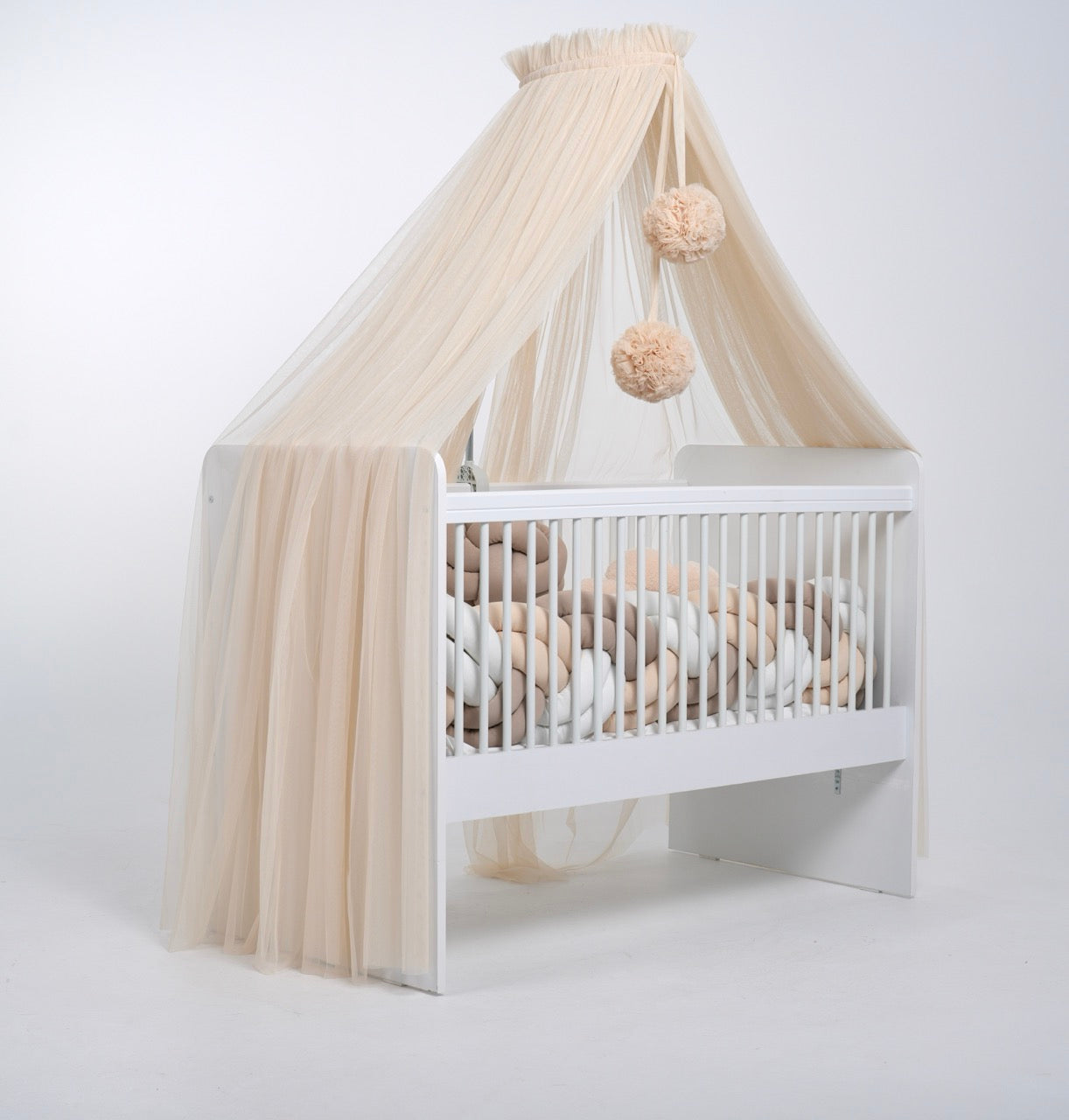 Dieser exklusive Deluxe Betthimmel aus besonders feinem, hochwertigem Tüll wird garantiert zum Highlight im Babyzimmer. Mit einer Stofffülle von 12 Metern sorgt er für einen traumhaft voluminösen Fall und verleiht dem Babybett eine elegante und luxuriöse Note.