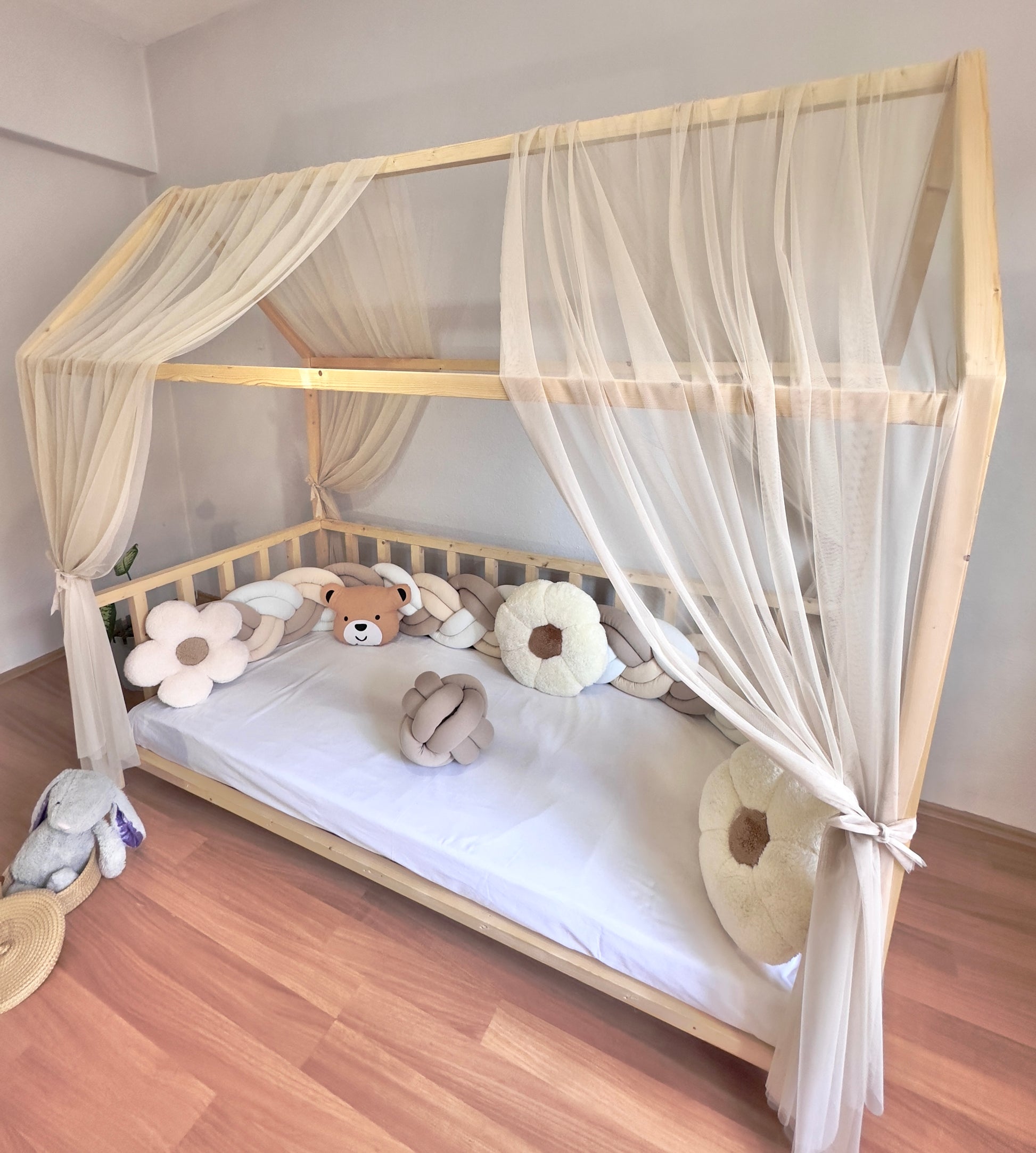 Verleihe dem Kinderzimmer eine gemütliche Atmosphäre, indem du dein Hausbett mit einem Betthimmel ausstattest.